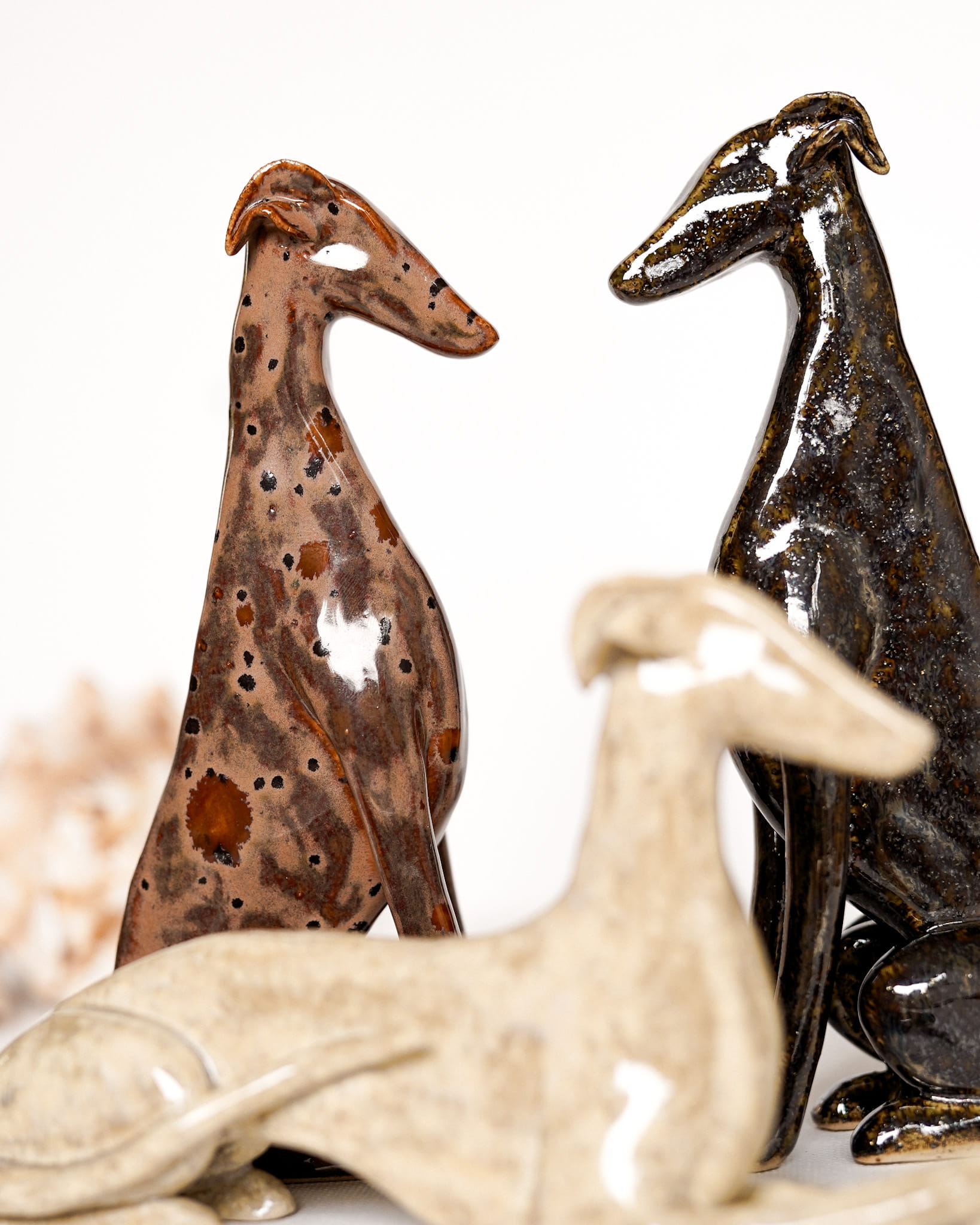 You can choose from all the shapes and colours of Clayhounds presented on my INSTAGRAM @clayhound.art – check the photos of my works and get inspired! Unfortunately I’m not able to create an identical representation of your dog. The range of colours I use is limited (although I’ll do my best to introduce new glazes regularly).